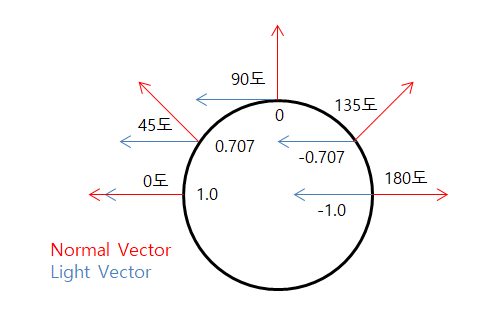 셰이더 라이팅에도 노말벡터와의 내적을 이용하여 밝기를 계산해준다.