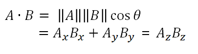 두 벡터의 길이가 1이라면 cosθ만 남으므로 내적을 이용해 두 벡터간의 각도도 구할 수 있다.
